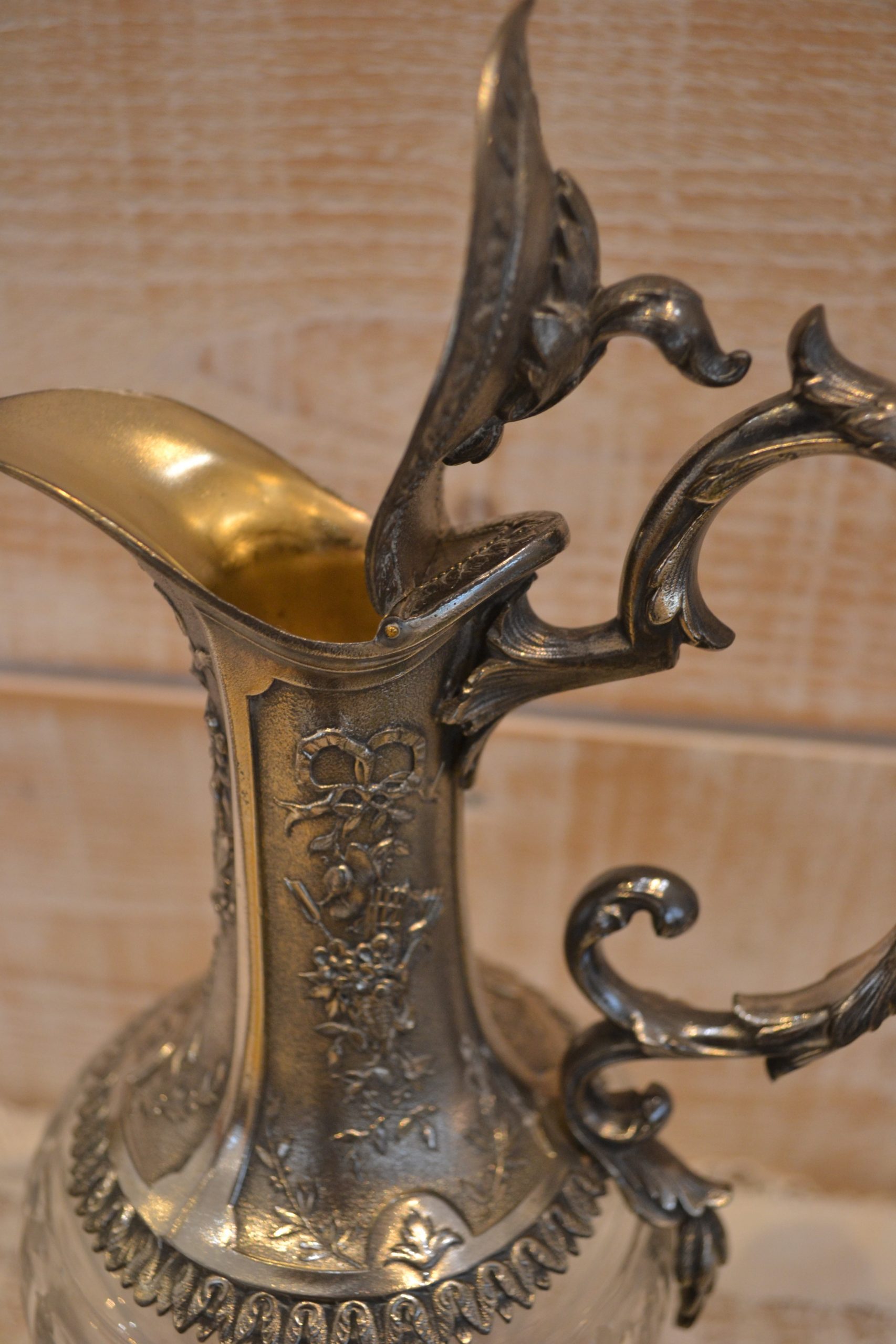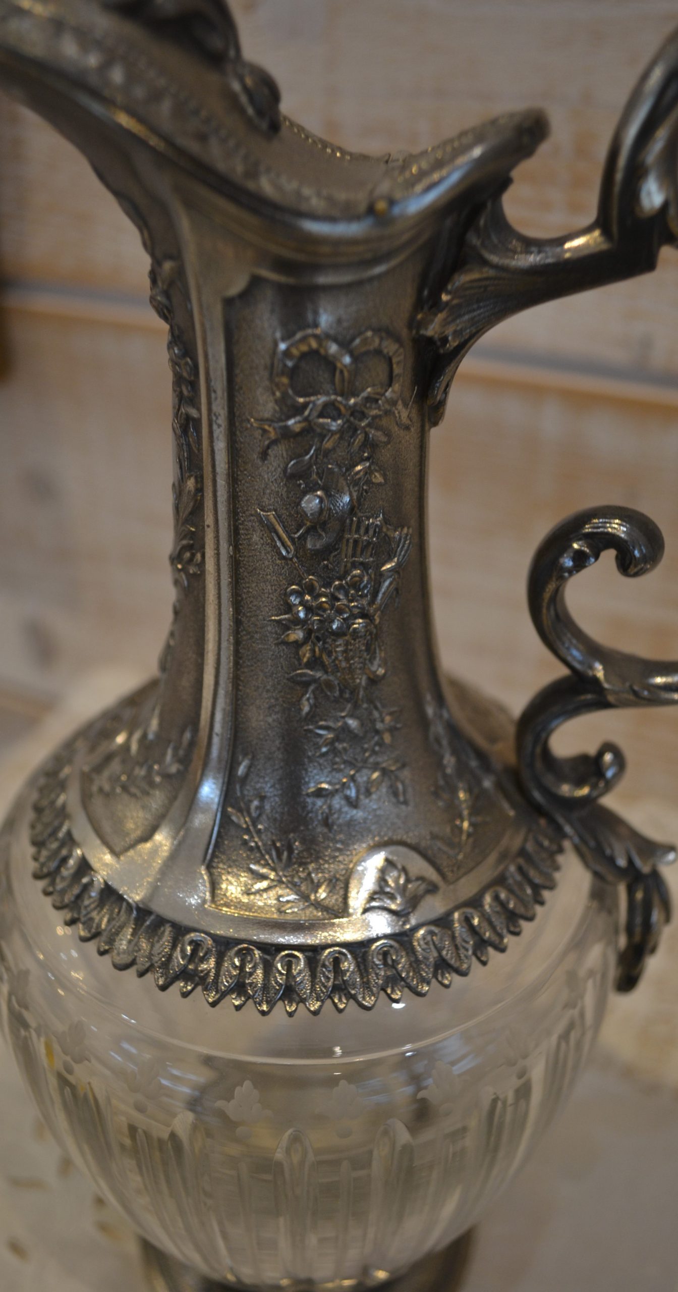 Aiguière en cristal et métal argenté du milieu du XIXème siècle de l’orfèvre Gallia -Christofle