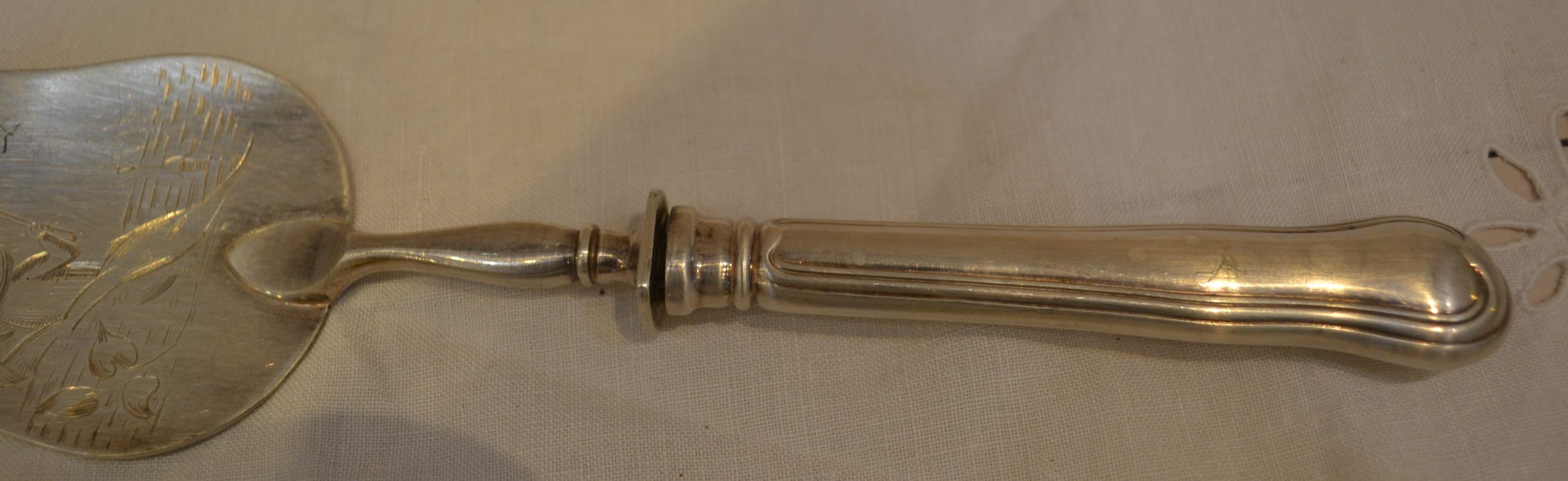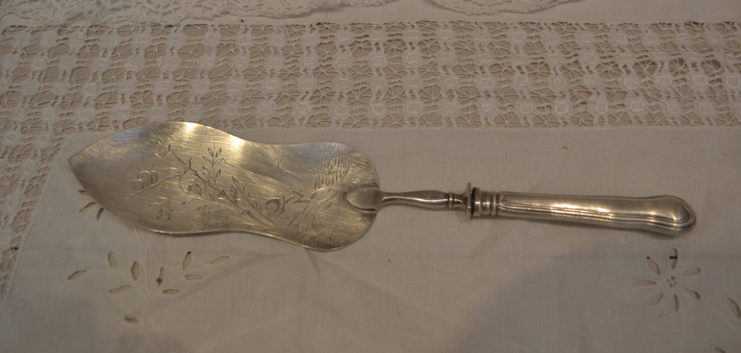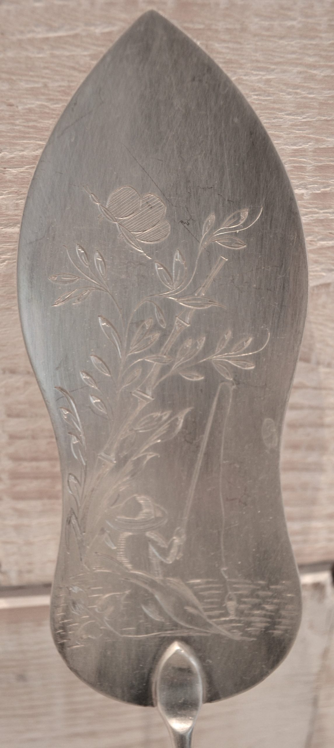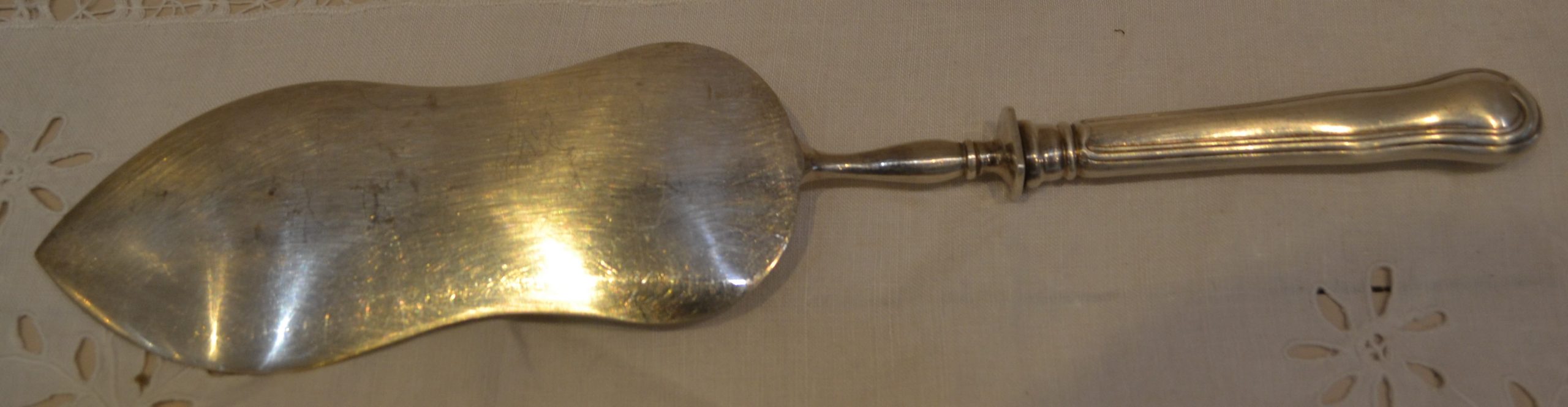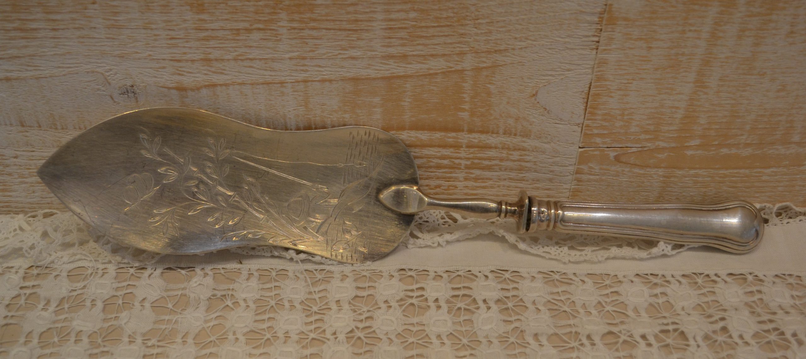 Magnifique pelle à poisson travaillée d’une jolie gravure, peut aussi servir de pelle à gâteaux pourquoi pas ?