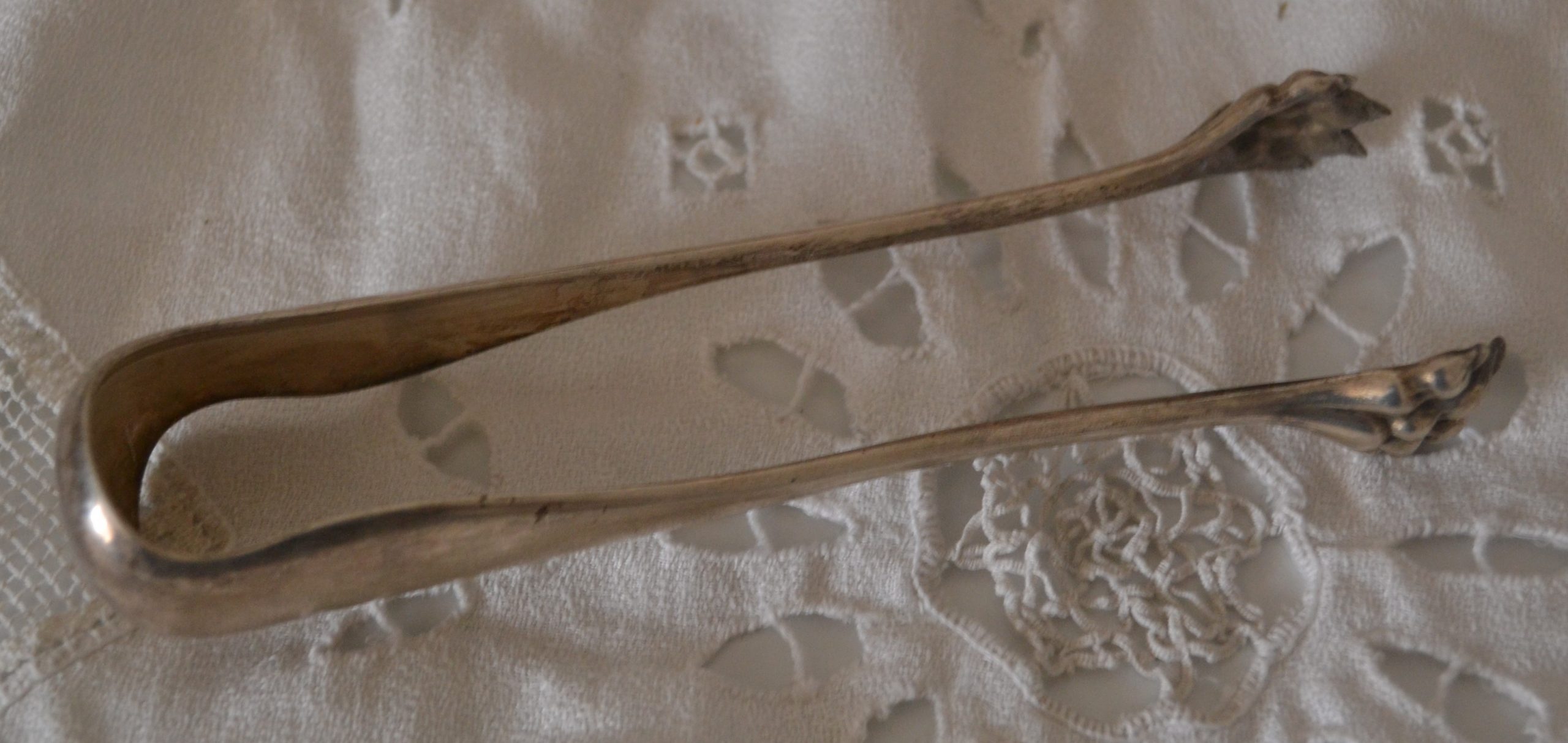 Jolie pince à sucre en métal argenté pour servir vos invités avec la patte de lion