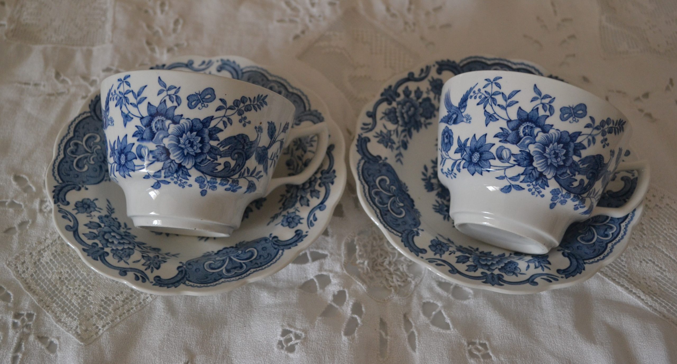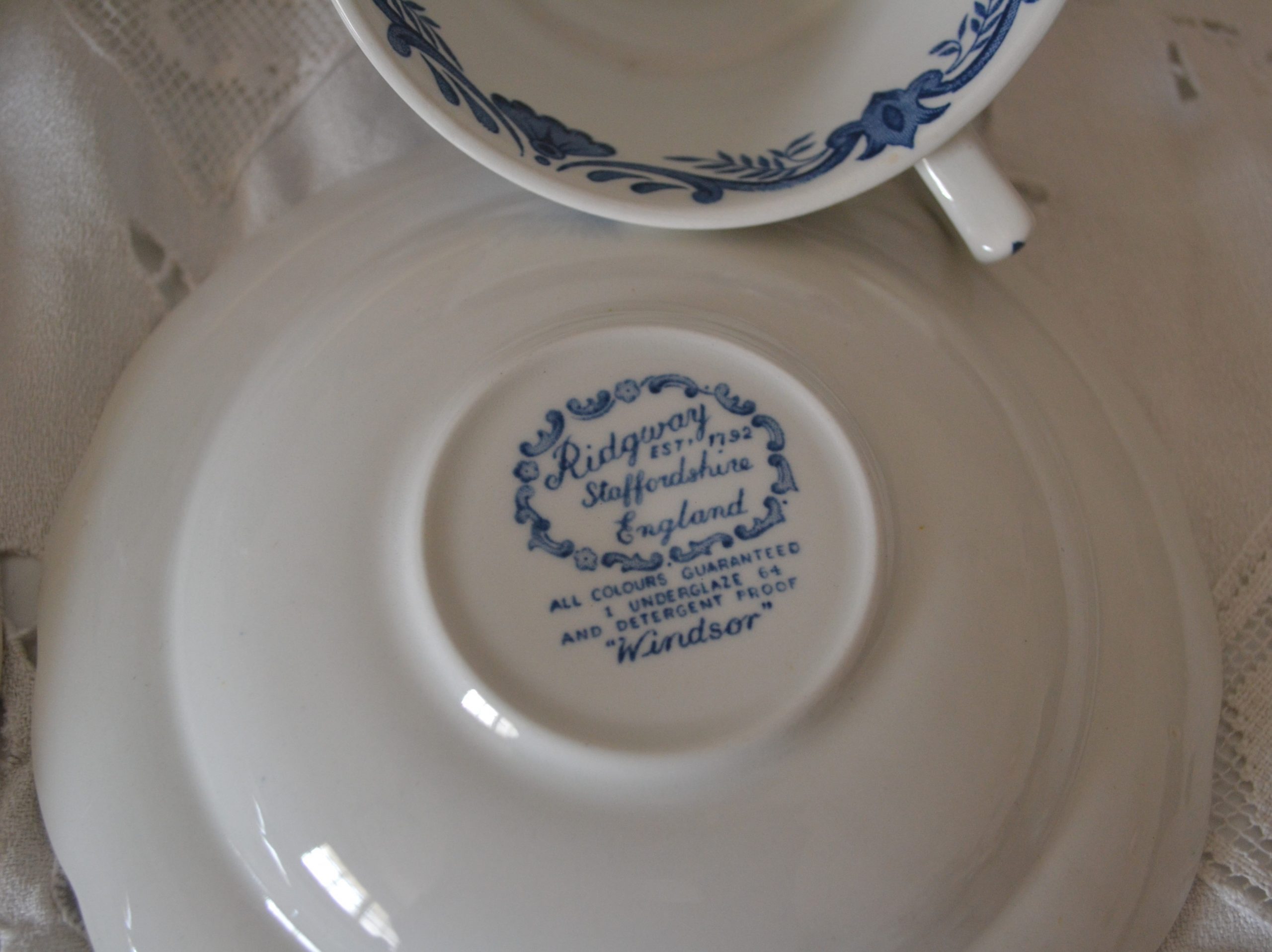 Duo de tasses à café ou thé et leurs sous tasses en faïence anglaise « Windsor ».